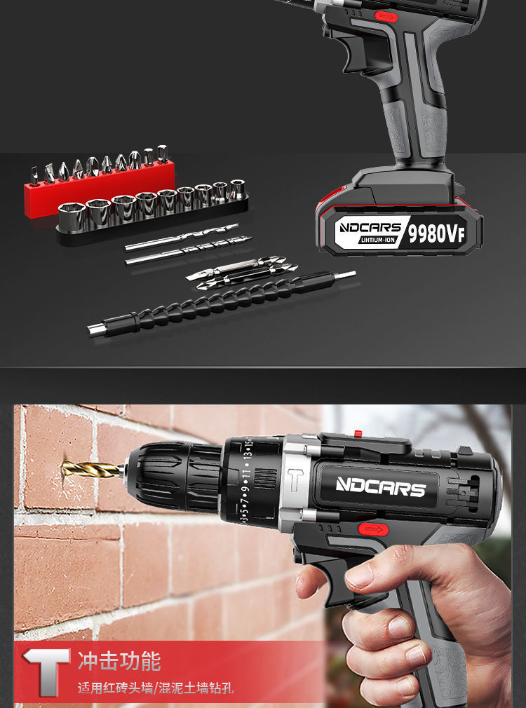工业级超大功率手电钻锂电双速充电钻冲击钻家用多功能电动螺丝刀
