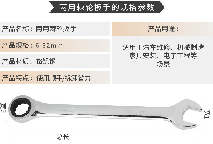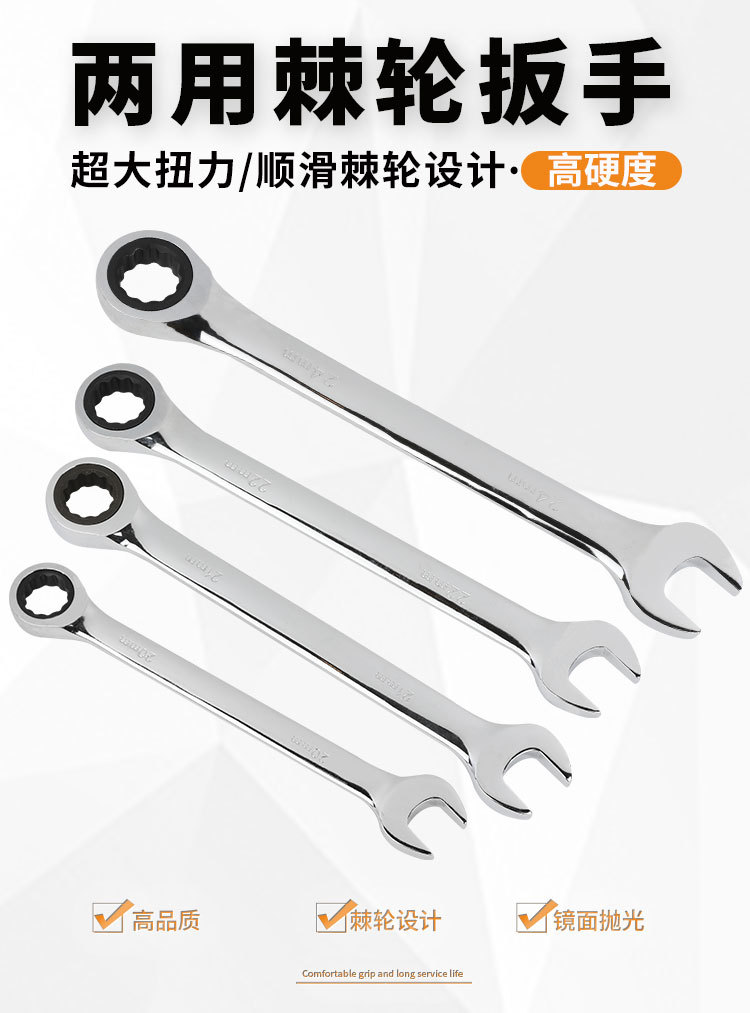 厂家批发棘轮扳手省力快速梅花开口双向万能两用梅开扳手工具套装