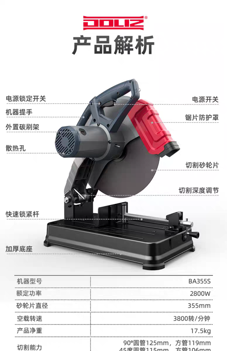 多利仕2800W切割机多利仕BA130钢材机355钢材不锈钢切割机大功率